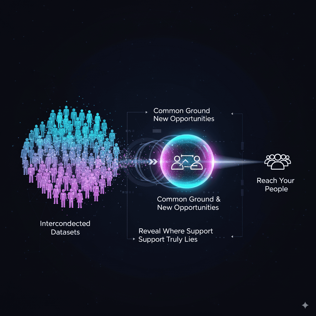 Discover common ground and new opportunities with interconnected datasets that reveal where support truly lies.